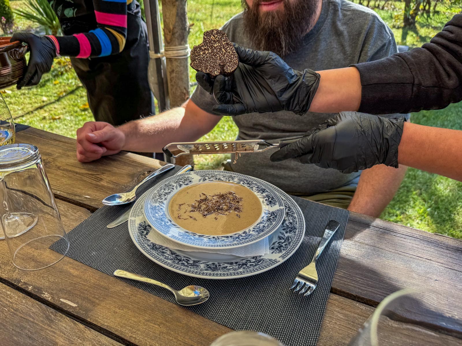 The highlight of the experience is the cooking session. Under the guidance of a skilled chef, dishes infused with the unique flavor of truffle will be prepared and tasted. The menu varies according to the season and the availability of ingredients, offering different flavors and surprises with each visit. For example, it may include potato soufflé with truffle, barley with mushrooms and truffle, scrambled eggs with truffle and prosciutto (optional), or beef burgers with mushrooms and truffle. Each visit brings new and unique culinary suggestions. Carefully selected wines accompany the meal to enhance the experience.