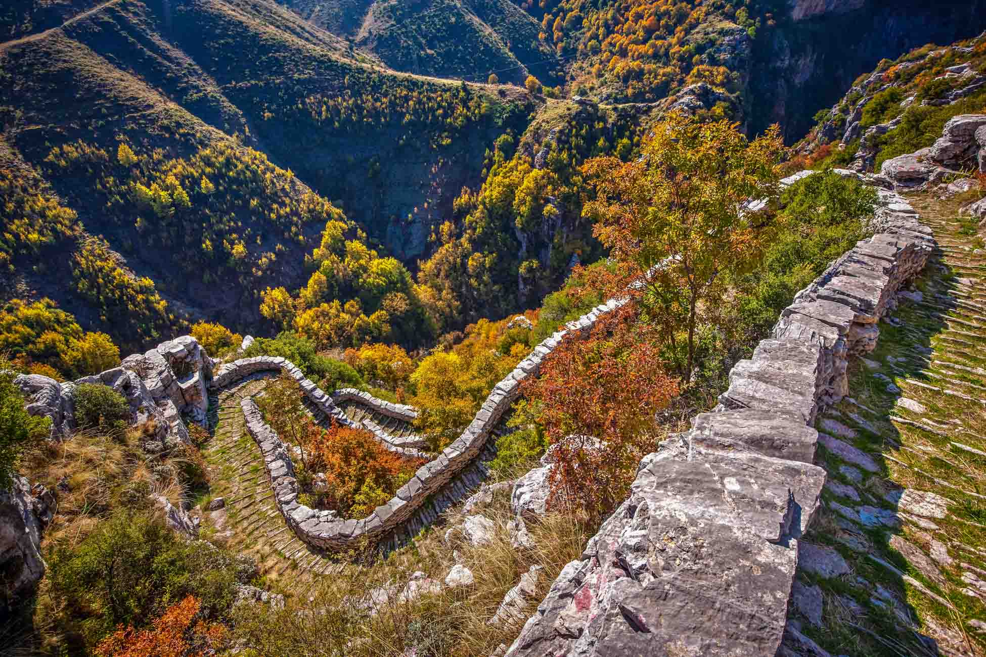 Get ready for a hike to remember! We’ll take you up to the highest-built village in Zagori, Vradeto, which sits at an impressive 1,350 meters. Our journey will take us up the stone-made steps that were once the only road connecting Vradeto to the outside world. The steps consist of 1,200 stairs and 39 turns, leading us to the picturesque Kapesovo village with stunning views. On the way, we’ll visit the Beloi viewpoint, a natural stone balcony providing breathtaking views of the Vikos canyon. And once we reach Vradeto, we’ll take a well-deserved break in the central square for a refreshing drink. This hike is perfect for adventurers and nature lovers alike!